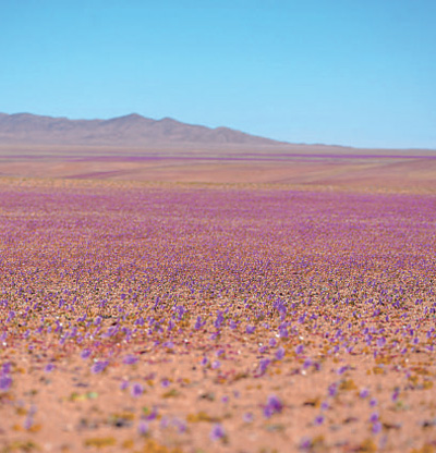 在國家電網(wǎng)智利阿塔卡馬沙漠輸電線路沿線的珍稀植物保護地區(qū),地下蘊藏著珍稀的休眠開花植物,在特定氣候下會綻放成片的花海,被譽為“花之沙漠”自然奇觀。國家電網(wǎng)供圖