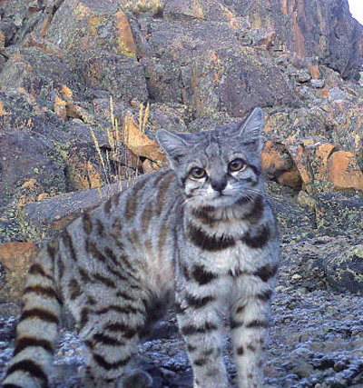 中鋁集團秘魯?shù)V業(yè)生物多樣性保護監(jiān)控系統(tǒng)拍攝到全球僅存不足2500只的安第斯山虎貓。中鋁集團供圖