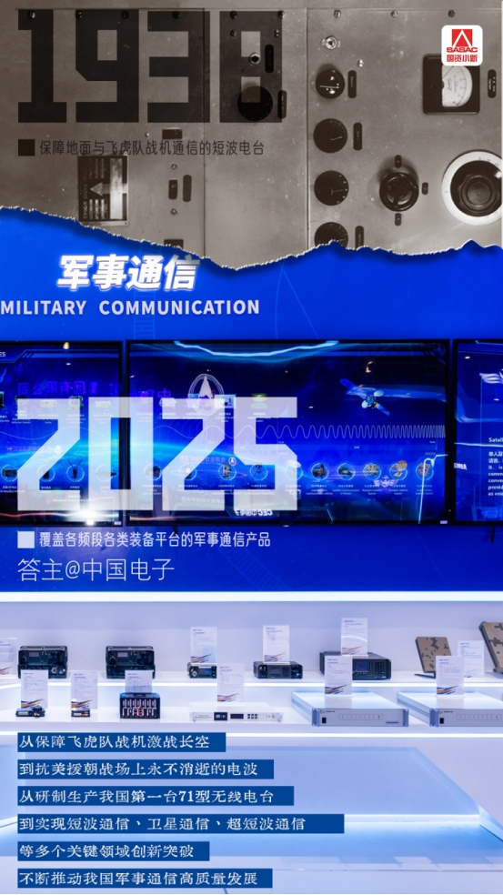 從保障飛虎隊戰機激戰長空,到研制生產我國第一臺71型無線電臺,再到實現短波通信、衛星通信、超短波通信等多個關鍵領域突破,如今的軍事通信產品譜系正傲然支撐著中國向軍事強國昂首邁進。