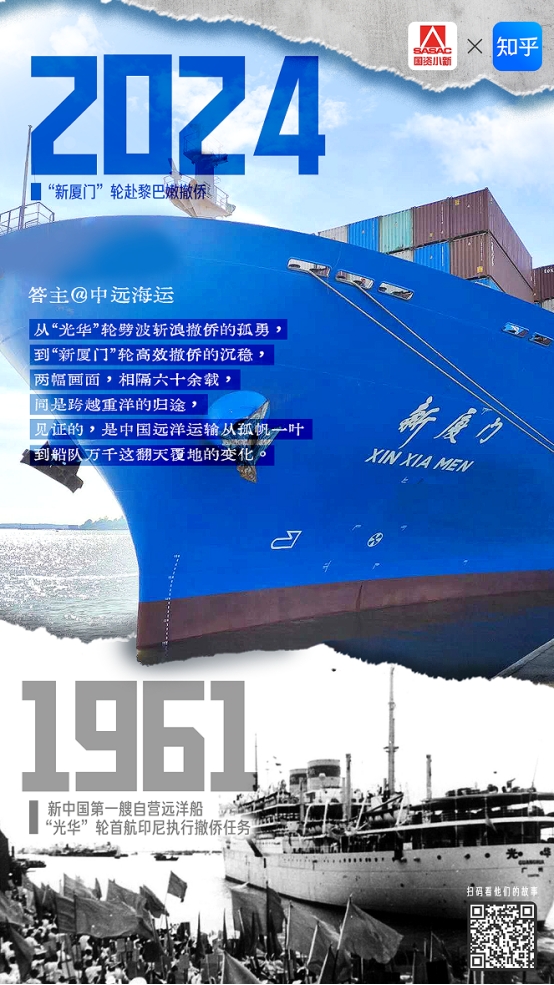 如今,在黎巴嫩貝魯特港,“新廈門”輪在40小時晝夜兼程,安全撤離80名同胞。相隔數十載,相同的是守護同胞的遙遙歸途,不同的卻是歸家路上,中國遠洋力量的巨變。