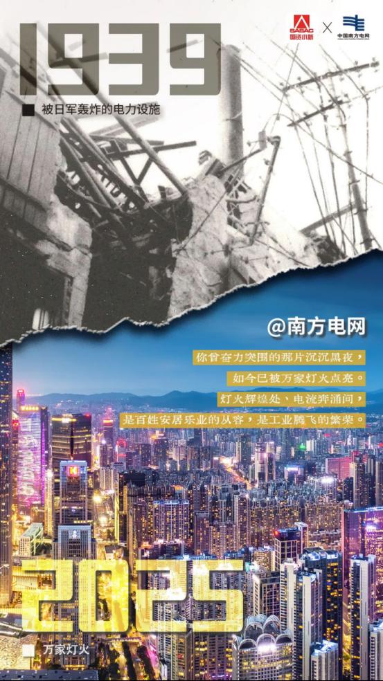 80年后的今天,城市農村燈火徹夜通明。前輩們曾拼死守護的電力火苗,以燎原之勢鐫刻下世界級灣區電網、直流輸電工程、“特高壓”國家名片等閃耀印記。燈火輝煌處、電流奔涌間,是百姓安居樂業的從容,是工業騰飛的繁榮!