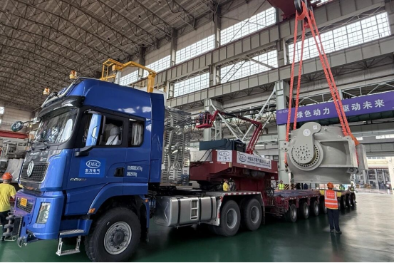 這臺“大國重器”于9月2日自東方電氣集團所屬東方電機廠房出發(fā),在經(jīng)歷24天、跨越3300公里的山水綠色征途后,最終抵達中原腹地的電站現(xiàn)場,為電站后續(xù)投產(chǎn)發(fā)電奠定了堅實基礎(chǔ)。