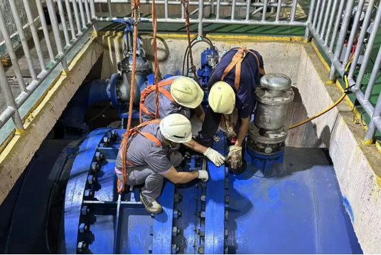 當地員工在檢修蝶閥