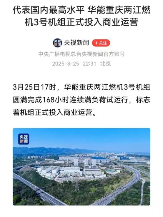 近日,央視新聞以《代表國內最高水平華能重慶兩江燃機3號機組正式投入商業運營》為題,報道了由東方電氣供貨的華能重慶兩江燃機3號機組。經試驗驗證,該機組性能指標優于設計標準,圓滿完成168小時連續滿負荷試運行,正式投入商運。