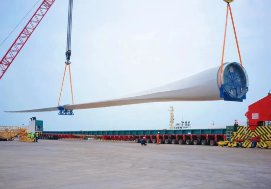 單支長度達(dá)153米的“葉片長龍”,長度堪比4架C919客機(jī)首尾相接,運(yùn)輸難度極高。從工廠到港口的運(yùn)輸路線如“障礙賽”,高壓線、橋梁、急彎層層阻隔,發(fā)運(yùn)團(tuán)隊(duì)提前半年實(shí)地勘測,多次復(fù)勘定制“分段式護(hù)送”方案。