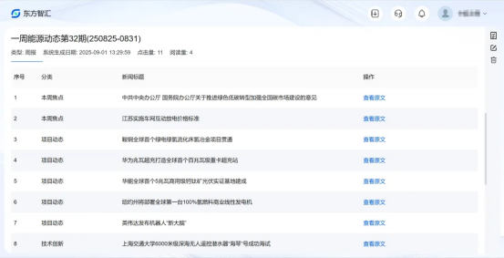 未來,東方研究院將持續推動“東方智匯”功能更新迭代,優化AI算法、拓展數據維度、完善服務體系,讓平臺“更智能、更貼心、更實用”。同時,還計劃依托平臺對外提供戰略咨詢、專題解析、動態信息獲取等優質服務,以可信賴的科技信息服務賦能產業鏈合作伙伴,攜手共建共享綠色數智生態,為能源行業的高質量發展注入源源不斷的智慧動力。