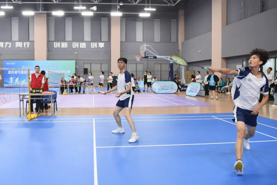 開幕式上,大賽組委會負責人介紹了比賽要求,東方共享黨委主要負責人致歡迎辭。比賽中,各參賽隊秉持“安全第一、友誼第二、比賽第三”的原則,賽出了風格,賽出了水平,展現出東方電氣人頑強拼搏、奮發有為的精神風貌。場內對決緊張激烈,各運動員靈活運用戰術,輕巧吊球與強力扣殺交替上演,行云流水般的精湛技藝引得場邊“好球!”“加油!”的助威聲此起彼伏,將現場氣氛不斷推向高潮。