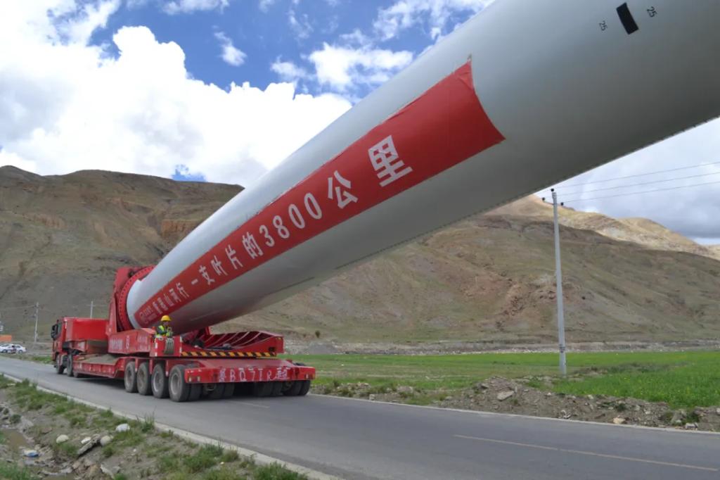 一波未平,一波又起。7月5日下午4時許,車隊抵達那曲路段,韓婷婷接到頭車司機電話,“因近期西藏大雨,原先規劃的運輸路段遇到道路修復施工,繞道則需耗費大量時間,葉片很可能無法按期駛入高速運輸”。得知突發狀況,東方鏢師團隊立即與當地交警部門取得聯系,詳細說明情況并請求協助。地方交警部門迅速啟動應急響應機制,調派了清障車和人力前往現場,對葉片運輸保障提供了有力支持。
