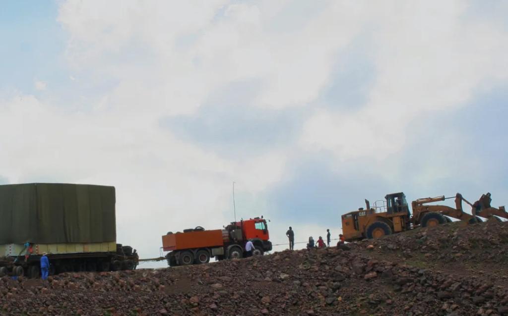 一切就緒,烏云密布的天空,宛如拉下了一塊巨大的黑色幕布。車輛嘶吼著前進,大馬力裝載機在車輛尾部“發狠”地往前推,轟鳴聲、摩擦聲、應答聲……在異國他鄉上演著一場盛大的“交響音樂會”。