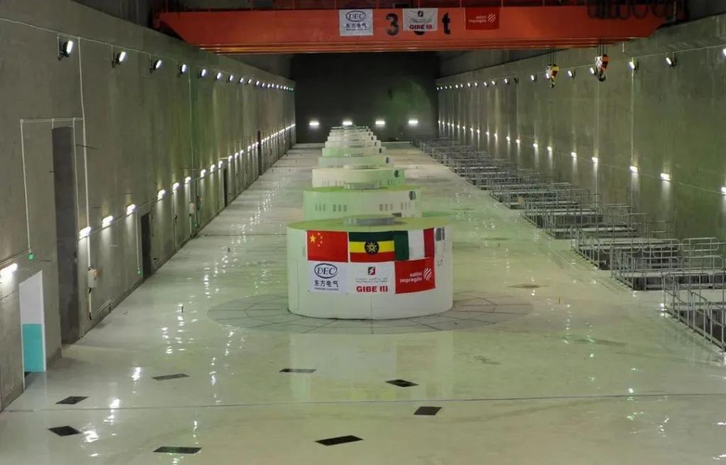 走進水電站內部,10臺巨大的混流式水輪發電機組整齊排列。電站內部干凈整潔,機組發電時,傳出低沉而有節奏的聲音,它們是整座發電站的“心臟”,是完完全全的東方電氣制造。“這是東非‘水塔’變‘電塔’的標志性工程,中國水電機組研制水平和承建能力在世界上再次得到檢驗!”時任中國駐埃塞俄比亞大使臘翊凡盛贊。