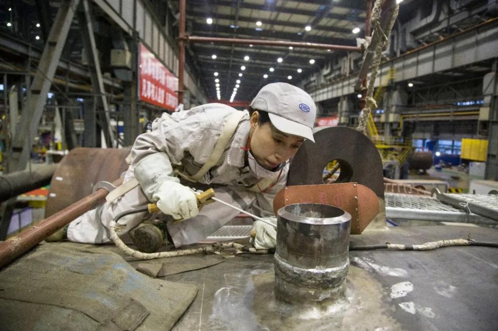 穿戴好厚厚的防護(hù)服、防護(hù)手套、戴上面罩,白映玉拿起焊條?;」忾W爍、火花四濺,一道細(xì)密齊整的魚(yú)鱗紋焊縫完美呈現(xiàn)。一年有四季,焊接的工位上卻沒(méi)有。這種超高溫的工作,不到兩分鐘就會(huì)讓人全身冒汗。10多年來(lái),白映玉已經(jīng)習(xí)慣了?!耙宦纷邅?lái),我也會(huì)遇到技術(shù)瓶頸,這時(shí)就需要反復(fù)學(xué)習(xí)、去練習(xí)、再實(shí)踐。”東方重機(jī)承擔(dān)了國(guó)家重大核能科技工程,鉻鉬鋼母材和不同材料焊材的熔合難題,擺在了白映玉面前,她開(kāi)始積極思考“怎樣快速讓焊接人員掌握焊接技巧,保證焊接質(zhì)量?”“唯手熟耳”還不夠,必須“武裝大腦”。白映玉經(jīng)過(guò)不斷地試驗(yàn)、總結(jié)、分析、完善和改進(jìn),僅用了7天就完成了培訓(xùn)計(jì)劃的制訂,搶在產(chǎn)品開(kāi)工前完成了技術(shù)骨干的集中培訓(xùn)。