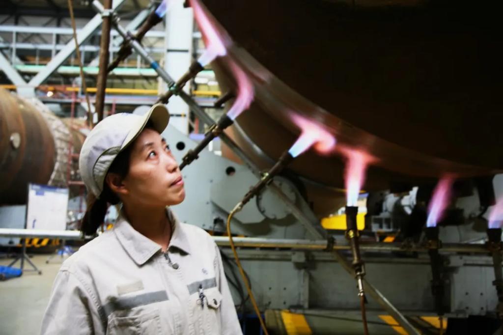 “焊后要清根,處理好坡口斜度、角度……”白映玉在課堂上進(jìn)行技術(shù)交底、試板打磨裝配、焊接。白天上班,晚上培訓(xùn),節(jié)奏緊湊而不緊張,為獲得穩(wěn)定的焊接工藝參數(shù)和焊接質(zhì)量打了堅(jiān)實(shí)的理論基礎(chǔ)。每一道焊縫,都是她對(duì)工作的熱愛(ài)與對(duì)質(zhì)量的承諾。當(dāng)最后一絲焊花熄滅,她終于長(zhǎng)舒一口氣,臉上露出了疲憊卻滿足的笑容。在承制第一臺(tái)AP1000蒸汽發(fā)生器管板管嘴低碳鋼和鎳基層堆焊時(shí),返修后仍有缺陷,白映玉主動(dòng)請(qǐng)纓獨(dú)自承擔(dān)第二次返修任務(wù),帶著一股子韌勁兒,一頭扎進(jìn)工位,琢磨缺陷產(chǎn)生的原因。在那個(gè)燈火通明的廠房里,夜幕已深,焊花映照出白映玉堅(jiān)毅的身影,她正全神貫注地握緊手中的焊槍,汗水沿著她的額頭滑落,卻絲毫沒(méi)有影響到她施焊的精準(zhǔn)與穩(wěn)定。焊接工序后,嚴(yán)格的檢查與后熱處理是不可或缺的一環(huán),但時(shí)間緊迫,若當(dāng)天無(wú)法完成,就意味著工件需要被送入加熱爐中保溫過(guò)夜,這不僅增加了能源消耗,還可能因溫度波動(dòng)影響焊接質(zhì)量,更會(huì)造成工期的延誤。