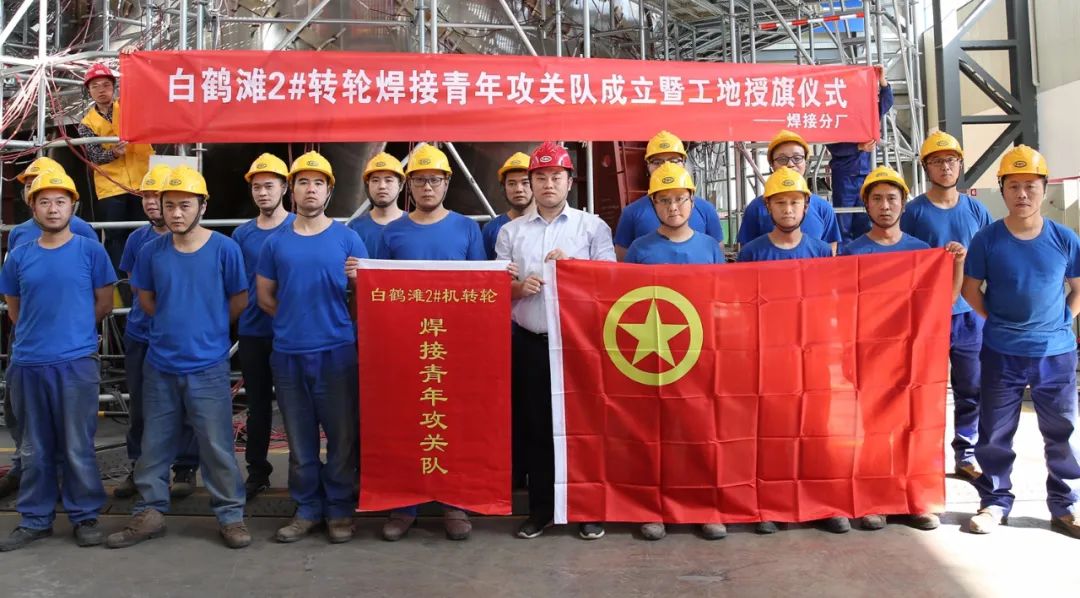 白鶴灘水電站是國務院已批復的《長江流域綜合規劃(2012—2030年)》中的一級水電站。東方電機承擔著白鶴灘水電站左岸8臺100萬千瓦水電機組的研制工作。2018年6月,東方電機焊接分廠團支部下設成立白鶴灘團支部,是一支“信念堅定、技能過硬、本領高強、能打硬仗”的高素質青年隊伍。