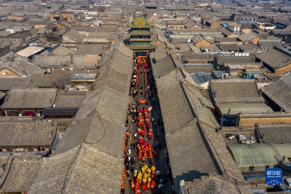 這是平遙古城一角(無人機照片,2月8日攝)。新華社記者 曹陽 攝