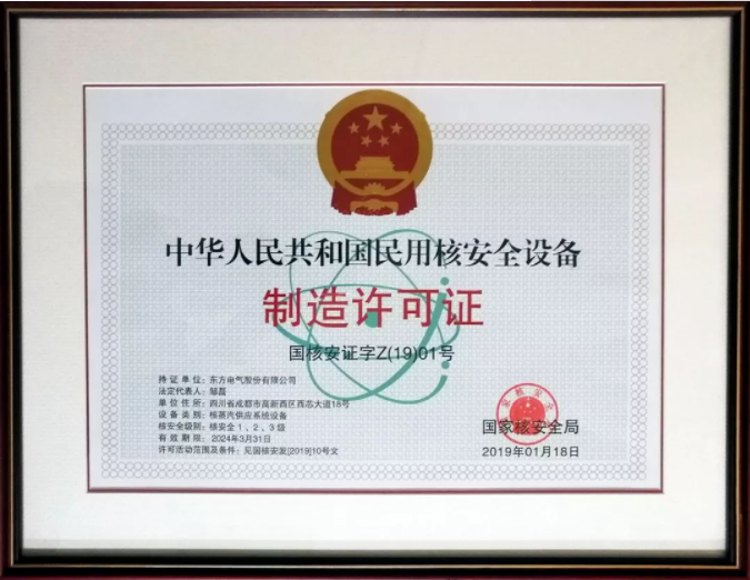構建核電完整產業鏈,打造核電設備成套供貨能力是東方電氣人的矢志追求。2019年1月21日,國家核安全局向東方電氣集團頒發了全國首張核蒸汽供應系統設備制造許可證,標志著東方電氣集團成為國內首家具有核蒸汽供應系統設備成套供貨資質的裝備制造集團。至此,經過十年努力、五年試點,東方電氣核蒸汽供應系統設備成套供貨許可取證工作圓滿完成。東方電氣集團以此為新起點,充分發揮成套供貨優勢,嚴格遵守核安全法規,切實強化核安全文化意識,不斷優化管理模式,持續設計制造能力和水平。