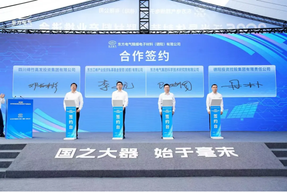 會上,東方精材分別與無錫帝科、杭州華光簽訂合作協(xié)議,綿竹市政府與東方研究院簽署合作協(xié)議,東方江峽產(chǎn)業(yè)投資、德陽投資控股集團(tuán)、四川綿竹高發(fā)投資集團(tuán)、東方研究院簽訂合作協(xié)議,江蘇瀚思瑞與四川綿竹高新技術(shù)產(chǎn)業(yè)園區(qū)簽訂合作協(xié)議。