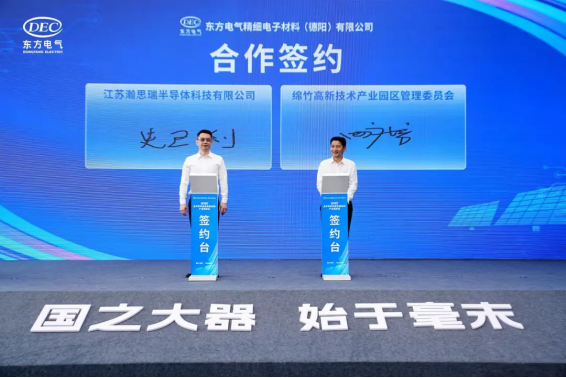 東方電氣集團(tuán)總經(jīng)理、黨組副書記張彥軍,德陽市委書記劉光強,中國電子商會會長王寧,東方電氣集團(tuán)總經(jīng)理助理、股份公司副總裁胡修奎,德陽市委常委、常務(wù)副市長李江波,德陽市副市長、綿竹市委書記王宏,綿竹市委副書記、代理市長潘鵬,清華大學(xué)、浙江大學(xué)、四川大學(xué)、華潤微電子控股有限公司、無錫帝科電子材料股份有限公司、杭州華光焊接新材料股份有限公司、福建省福東科技集團(tuán)有限公司、廣州市儒興科技股份有限公司、株洲中車時代半導(dǎo)體有限公司、隆基綠能科技股份有限公司、英特爾產(chǎn)品(成都)有限公司、蘇州創(chuàng)印電子科技有限公司、德陽投資控股集團(tuán)有限責(zé)任公司、四川綿竹高發(fā)投資集團(tuán)有限公司等相關(guān)領(lǐng)導(dǎo)專家出席大會。