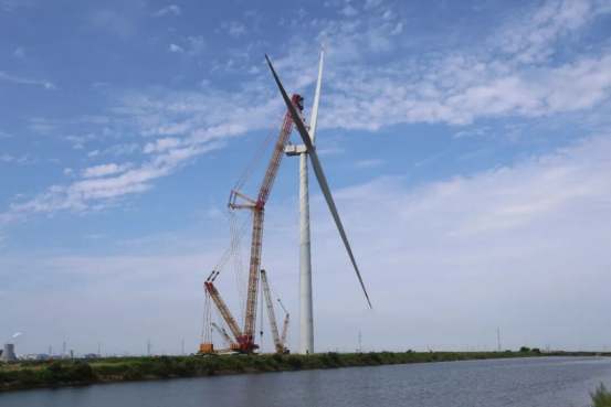 ▲全球最大26兆瓦級海上風電機組吊裝
