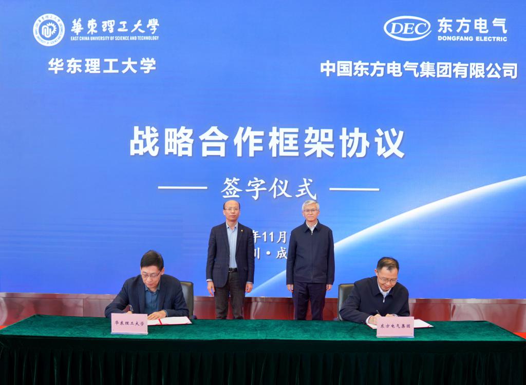 11月13日,東方電氣集團與華東理工大學在蓉簽署戰略合作框架協議,在東方電氣集團總經理、黨組副書記張彥軍,華東理工大學校長軒福貞的共同見證下,東方電氣集團總經理助理、股份公司副總裁胡修奎,華東理工大學副校長李春忠代表雙方簽字。