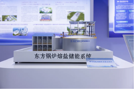 東方電氣打造的熔鹽儲換熱島集成系統創新實現了多種能源形式的“時空轉移”——將煤電機組富余蒸汽、低谷電力、新能源棄風棄光等碎片化能源,高效轉化為熔鹽顯熱儲存,并在需要時靈活釋放,用于供應高參數工業蒸汽、推動汽輪機發電或驅動背壓機熱電聯產。目前,該集成系統已在山東魯西火電機組靈活性改造、國能宿州熱電解耦、中能建酒泉300兆瓦壓縮空氣儲能等多個項目中落地。