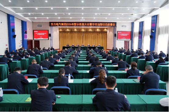 4月8日,東方電氣集團召開2026年警示教育大會暨專項治理動員部署會,全面貫徹黨的二十屆四中全會、二十屆中央紀委五次全會精神,深入貫徹落實國務院國資委黨風廉政建設和反腐敗工作部署,持續推動樹立和踐行正確政績觀學習教育,開展警示教育,深化專項治理,持之以恒推進全面從嚴治黨。集團公司領導羅乾宜、張彥軍、張少峰、孫國君、袁明剛、王軍、李建華出席會議。