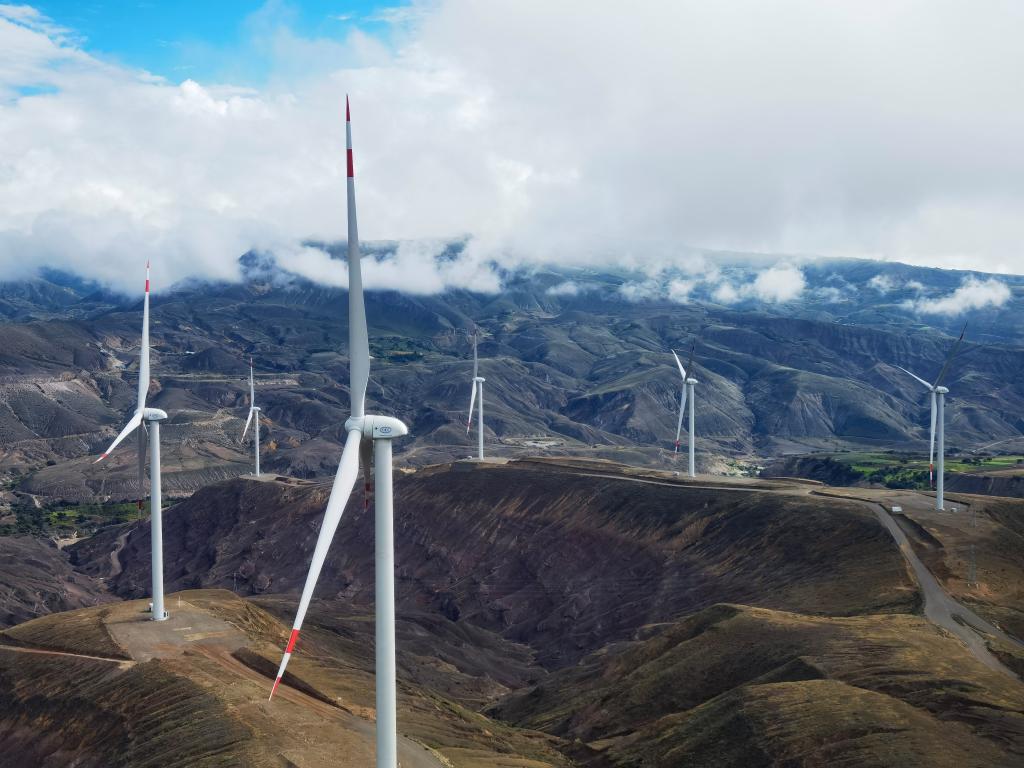 蘆葦橋風電項目位于厄瓜多爾洛哈省薩拉古羅州,坐落于安第斯山脈,是該國在運單機容量和總容量最大的風電項目,也是東方電氣在南美洲落戶的第一個風電項目。2023年2月,蘆葦橋風電項目14臺機組實現全部并網,每年可輸送綠色電能約1.3億度,減少標準煤消耗4.3萬噸,減少二氧化碳排放10.5萬噸,有力助推厄瓜多爾實現能源結構多元化、綠色低碳發展。